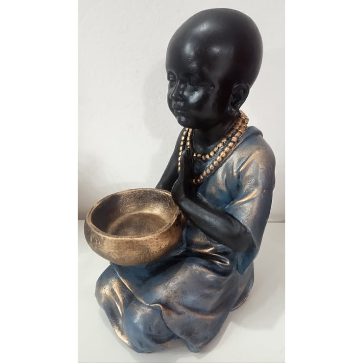 Buda chinês grande com castiçal de resina.
