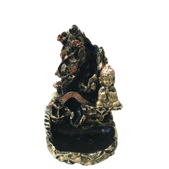 Lindo incensário cascata com Buda Hindu. Feito em Resina de alta qualidade.