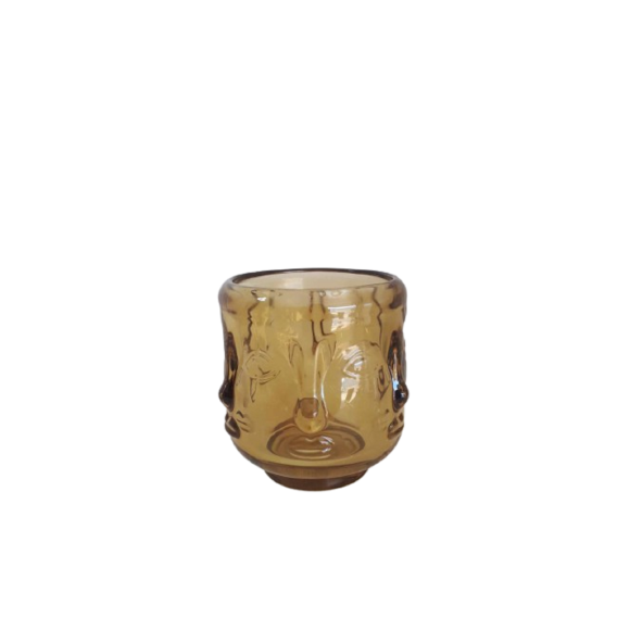Lindo Castiçal Amarelo com faces Buda.
