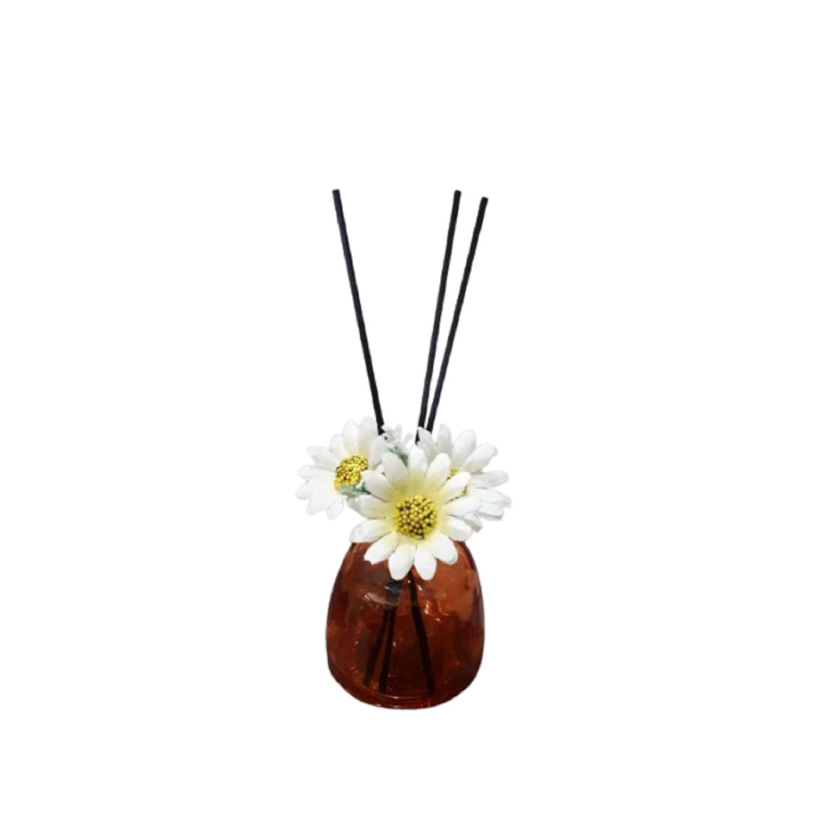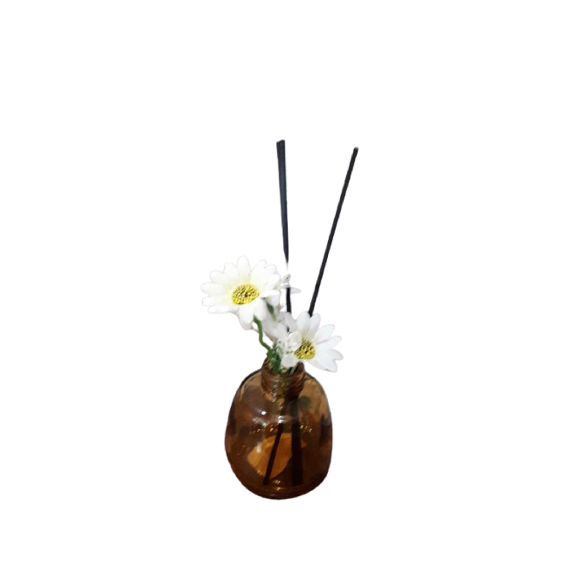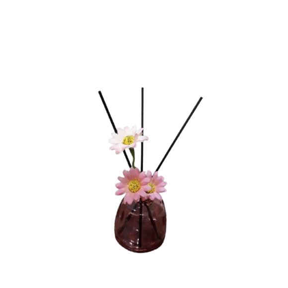 Frasco para difusor com flor decorativa.